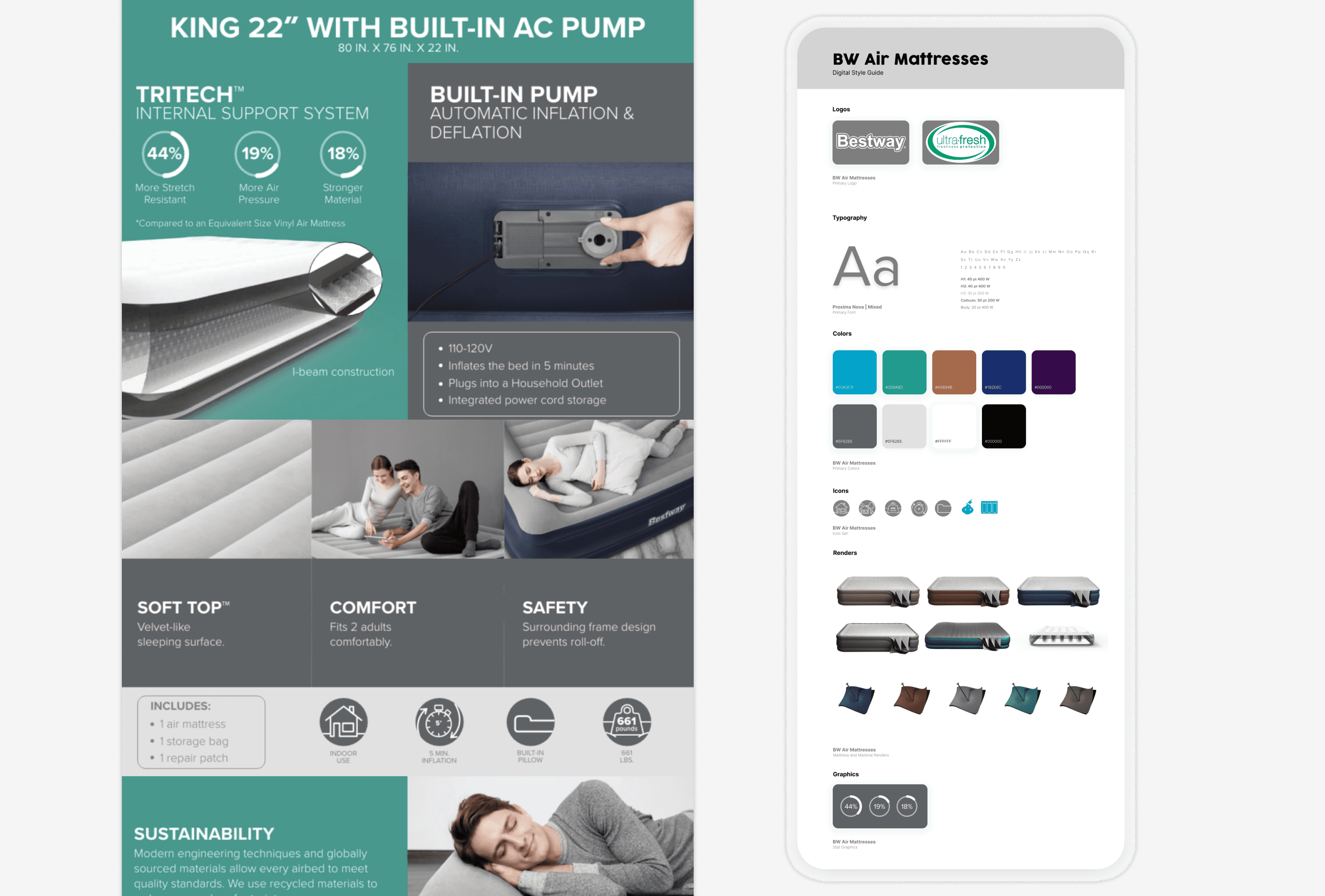 Developed comprehensive design systems tailored to each Bestway brand for enhanced content. These systems encompassed brand styles and assets, enhanced content templates for various products, and infographic templates to convey key information effectively.